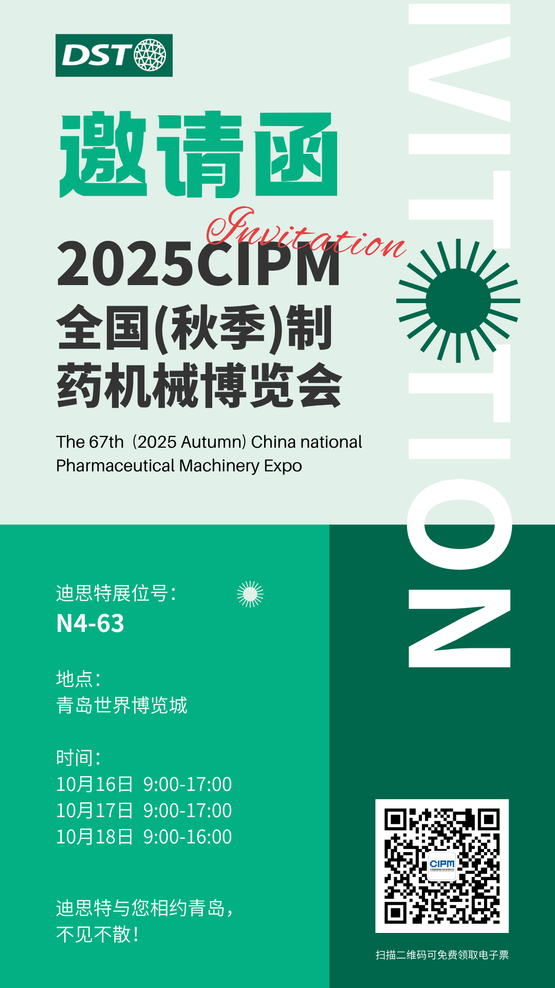 第67届 (2025年秋季) 全国制药机械博览会即将于2025年16日-18日在青岛世界博览城举行,迪思特展位号:N4-63